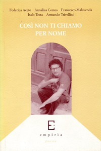 COSI' NON TI CHIAMO PER NOMEFederica Aceto, Annalisa Comes, Francesco Malavenda, Italo Testa, Armando TrivelliniIntroduzione di Elio Tavilla. A cura di Gloria Bellezza. Sono certo che Dario Bellezza avrebbe apprezzato i poeti riuniti in questo volume. Avrebbe apprezzato una poesia che non assurge mai a protagonista autoreferenziale dei componimenti che essa ispira. E' la prima regola a cui il poeta che abbia matura coscienza della pericolosa ambivalenza della scrittura sa di doversi attenere. Per questo è buona cautela non evocarne mai direttamente il nome, non chiamarla mai per nome, non fare di quel nome il nume tutelare di un rito di vuota letterarietà.